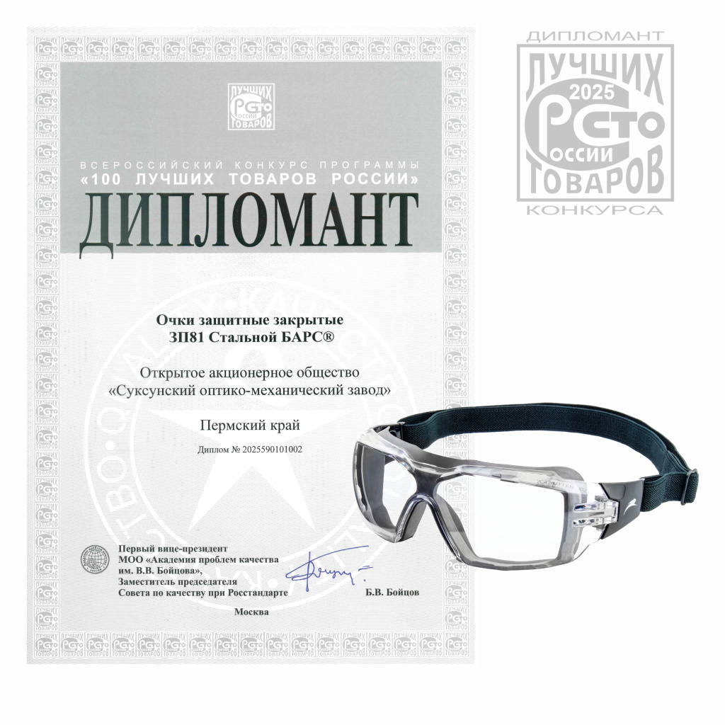 - Очки защитные закрытые ЗП81 Стальной БАРС®.