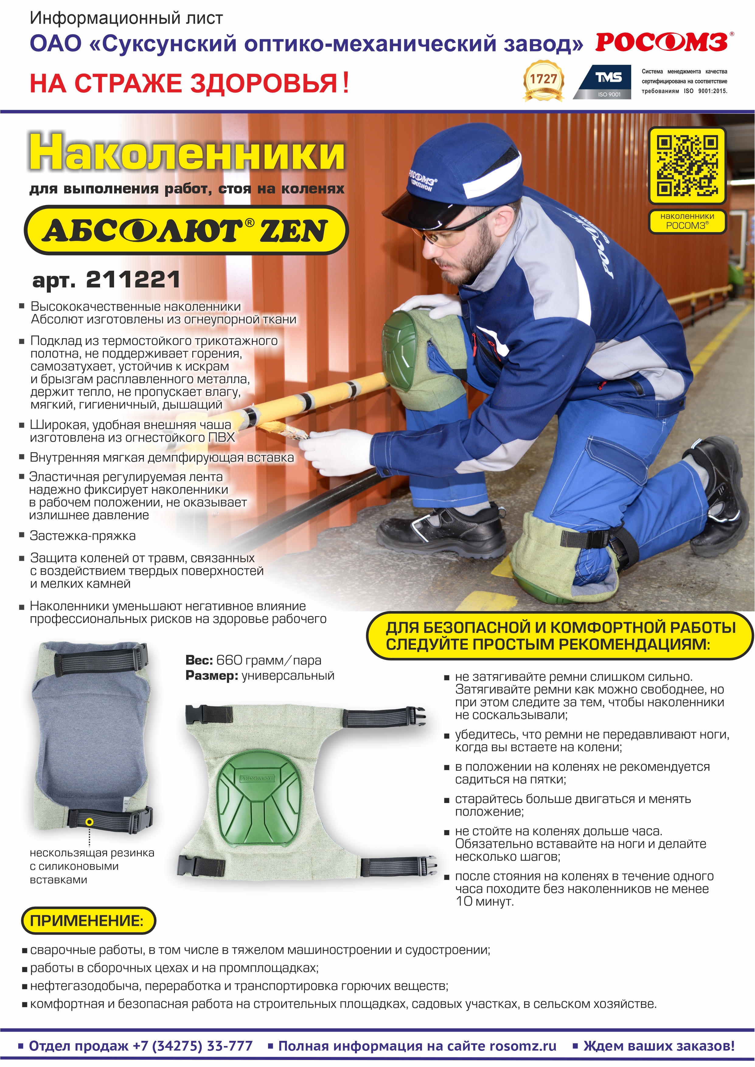 Высококачественные наколенники Абсолют изготовлены из огнеупорной ткани;
