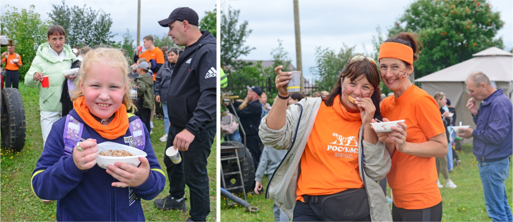 Фуд-корт стал местом, где участники и гости могли подкрепиться горячим чаем, кофе, прохладительными напитками и вкусными блюдами. Ароматная гречневая каша, приготовленная прямо на стадионе, стала любимым угощением всех присутствующих.