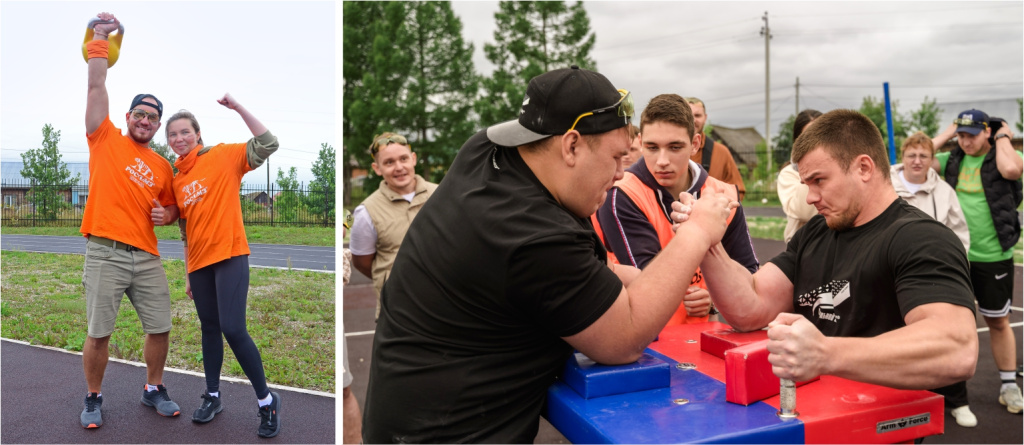 Мини-футбол, армрестлинг и гиревой спорт на открытом воздухе.